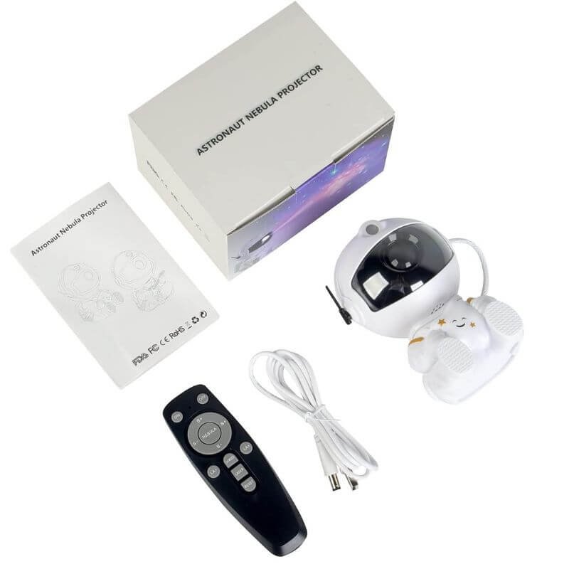 Produce a mystical ambiance by projecting fragments of universe across your walls. With this cosmonaut galaxy illuminator, choose among an array of 12 unique patterns. Perfectly suitable as a night lamp or ambiance light, it will exceed expectations. USB-powered and equipped with a remote control, this combination of figurine and projector is an excellent decor feature for a child’s living space.