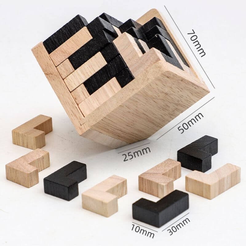 Embark on a journey of intellect and planning with our Cube Puzzle. This wooden puzzle goes beyond being a mere game, it presents a sound mental test. It’s designed to examine your critical thinking and patience. The goal? To assemble all the pieces into a flawless cube. However, this wooden cube puzzle is much trickier than it looks. Your every move matters and there’s a specific position for each piece.