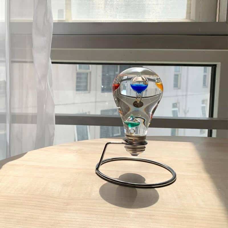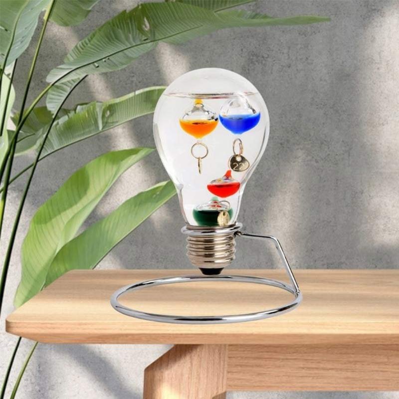 Based on the room temperature, the floating objects in the bulb shift position, falling or rising, displaying a vibrant dance of colors, creating a unique scene with each change. The Galileo Bulb thermometer offers a dynamic visual spectacle in sync with the changing seasons.