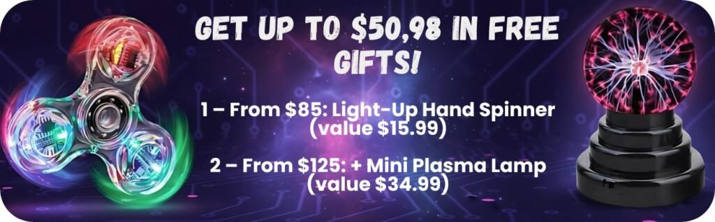 Whether it’s on your fingertip, spinning on a string, on any flat surface or on its included base, this Gyroscope Light maintains a balanced spin for extended periods. With the fascinating spin-illumination effect, this spinning top presents a futuristic, UFO-like appearance. Its persistent angular motion invokes the illusion resembling an alien spacecraft in flight.