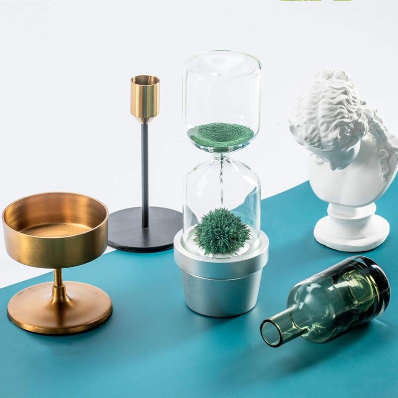 Place it on work desks, windowsills, nightstands, or any other spot in your living space, this designer hourglass seamlessly fits in. Use it as an alternative to plants in your interior décor, or as an additional flair. This designer hourglass comes in gray and copper variations.