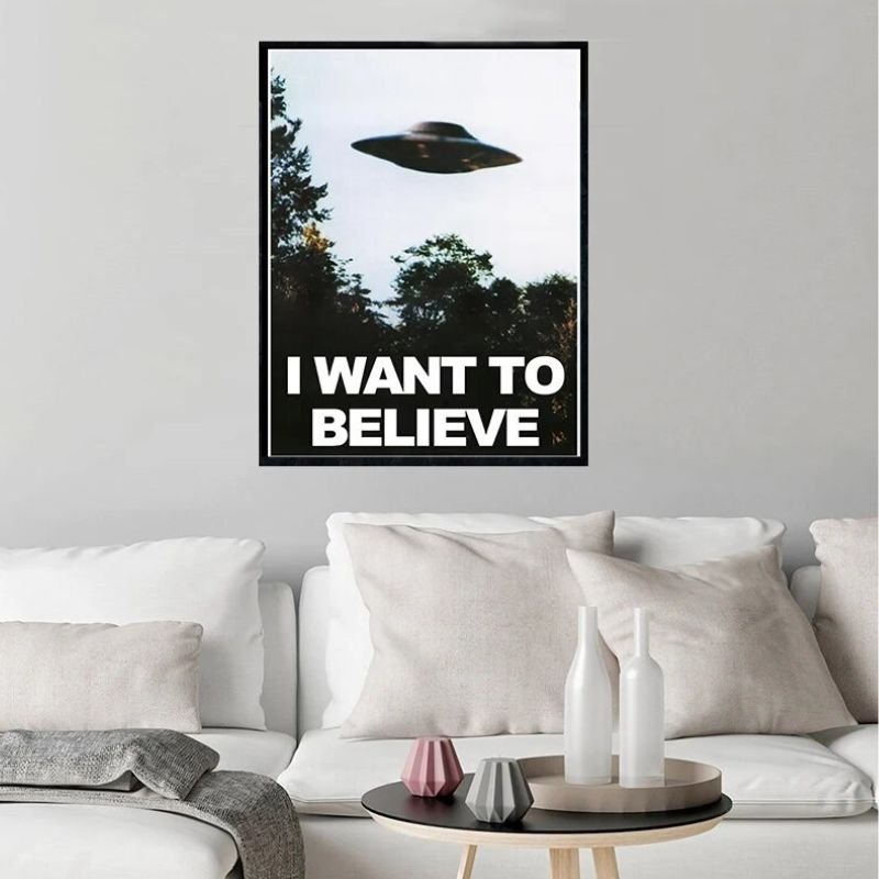 The unique I Want to Believe UFO Poster signifies a binding connection for all X-Files fanatics and those with a constant curiosity for life beyond Earth. It does not only enhance the sense of enigma in your setup but also serves as an ongoing commemoration of your fascination with ufology and scientific mysteries. Whether you seek the truth or are simply an admirer of the series, this poster fits perfectly for you.