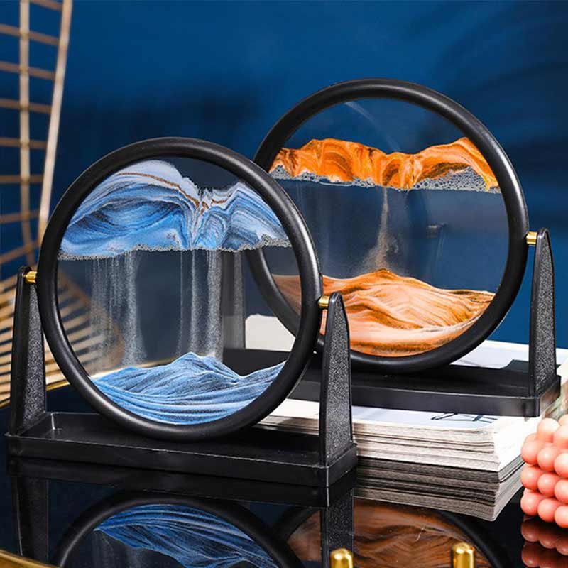 The Rocking Landscape Hourglass provides a calming environment due to its thoughtful blend of clear bubbles and colored sand. It is known for its flowing sand movement which appears to mimic a natural occurrence in a sandy desert, under the sea, or on a mountain peak. This hourglass will beautify your office or home while drawing attention.