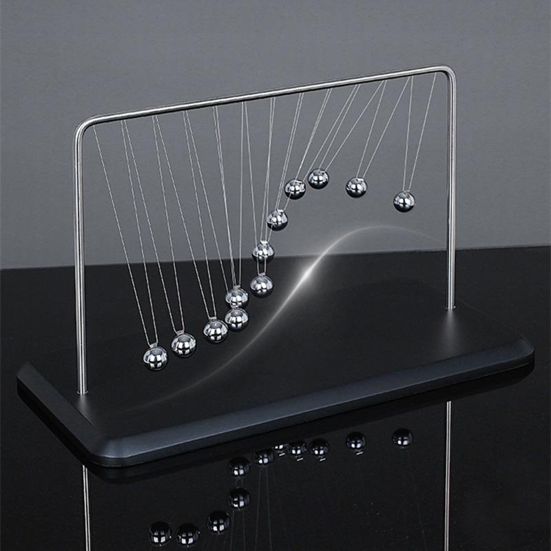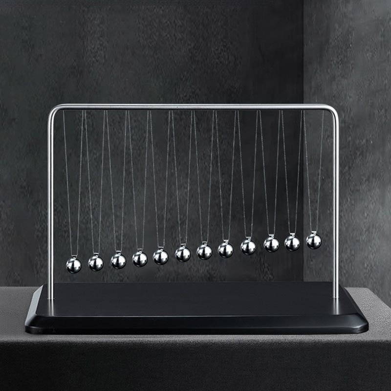 Its enlarged proportions and the fact that this Newton pendulum comes fitted with 12 balls sets it apart. Unlike an ordinary pendulum, these balls create a perpetual wave rather than overlapping, presenting a mesmerizing spectacle.