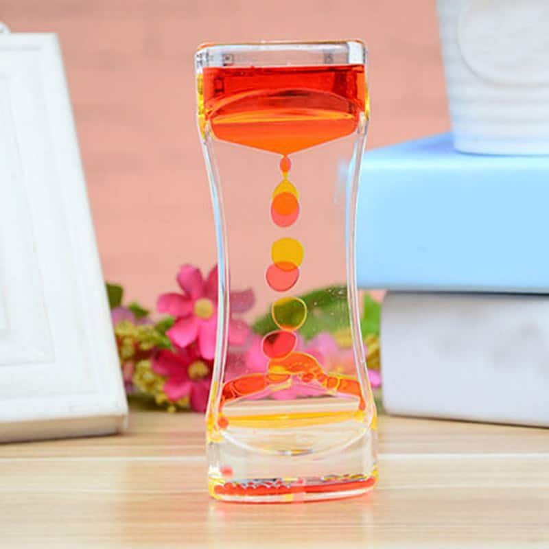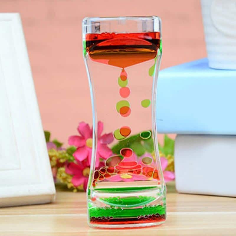 Experience the beauty of time with multi-colored bubbles flowing freely. With its strong symbolism, this Liquid Oil Timeglass is an engaging addition to your home decor. Displaying contrasting oil bubbles that flow without merging, this petite and transparent piece emphasizes the beauty of its surroundings.