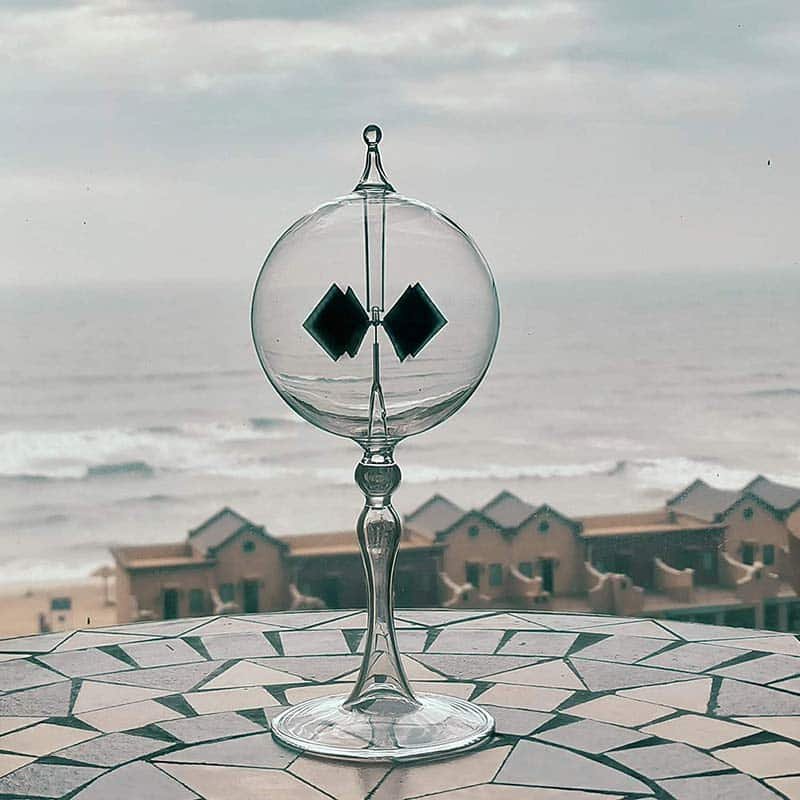 The solar radiometer is supported upon a lengthy, resilient glass stem with a level, rounded base. This allows for effortless relocation from a sunny interior to an open setting. Consider it as an ornamental add-on to your space or an eye-catcher for your outdoor gathering. The thinness of the glass used ensures the precision of this radiometer.