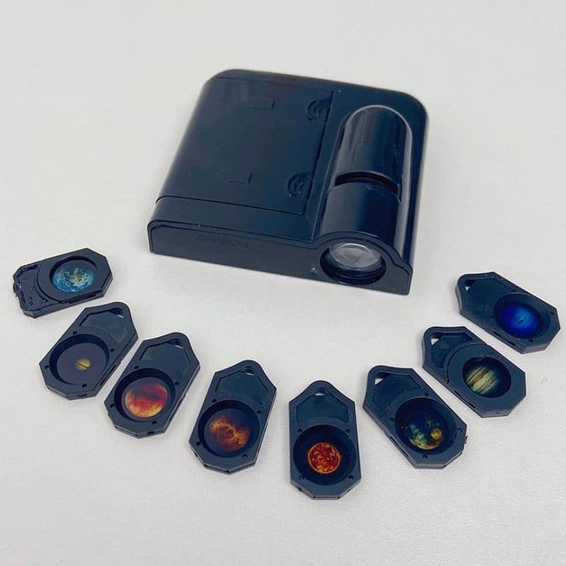This Galaxy Projector is equipped with 8 films that artfully represent, in high resolution, the eight planets of our solar system- Mercury, Venus, Earth, Mars, Jupiter, Saturn, uranus, and Neptune.. Become knowledgeable about each planet’s sspecific rings, layers, and gas swirls, all while enjoying the unique colors. A projector that instructs and decorates simultaneously.