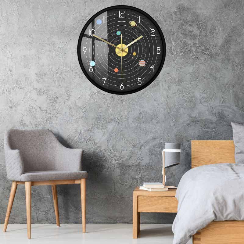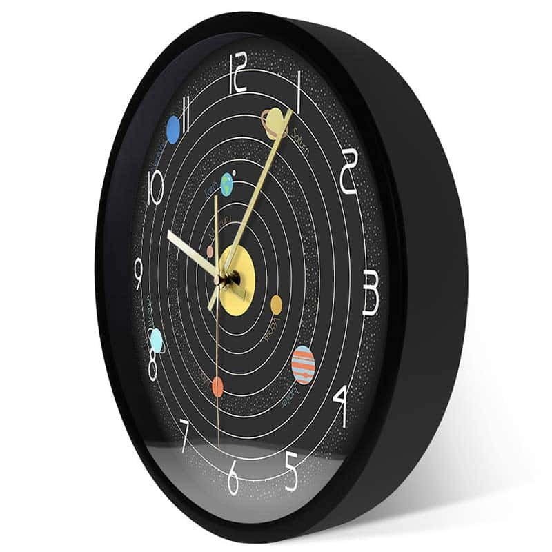 Our solar system clock possesses a relatively standard design, ensuring it can seamlessly blend with any decor style in your living room, office, bedroom or hallway. Choose between versions with or without a frame for optimum wall hanging.
