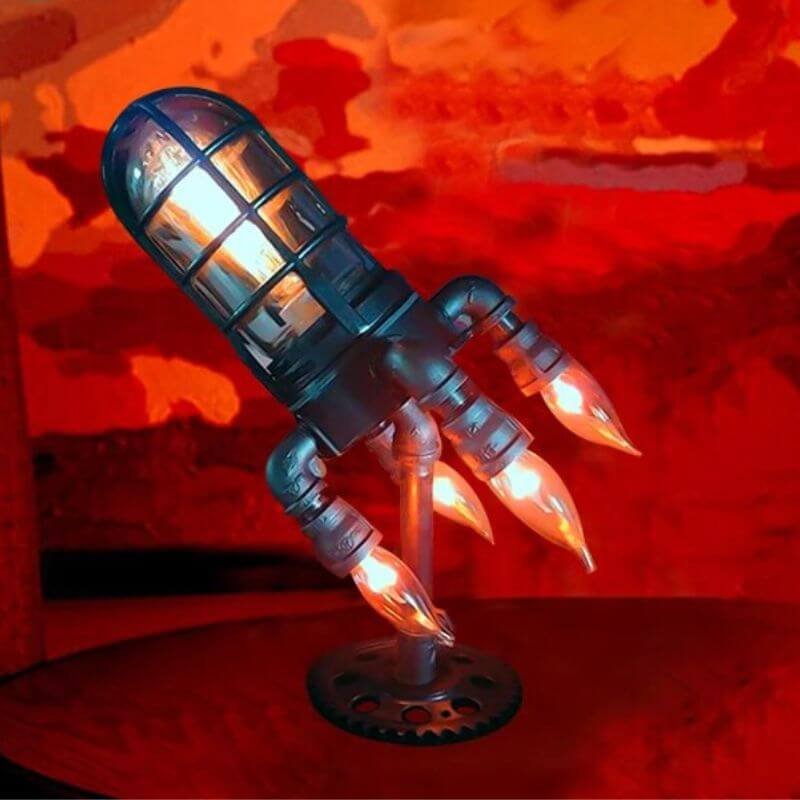 Antique Steampunk Rocket Lamp: Retro Astral Illumination