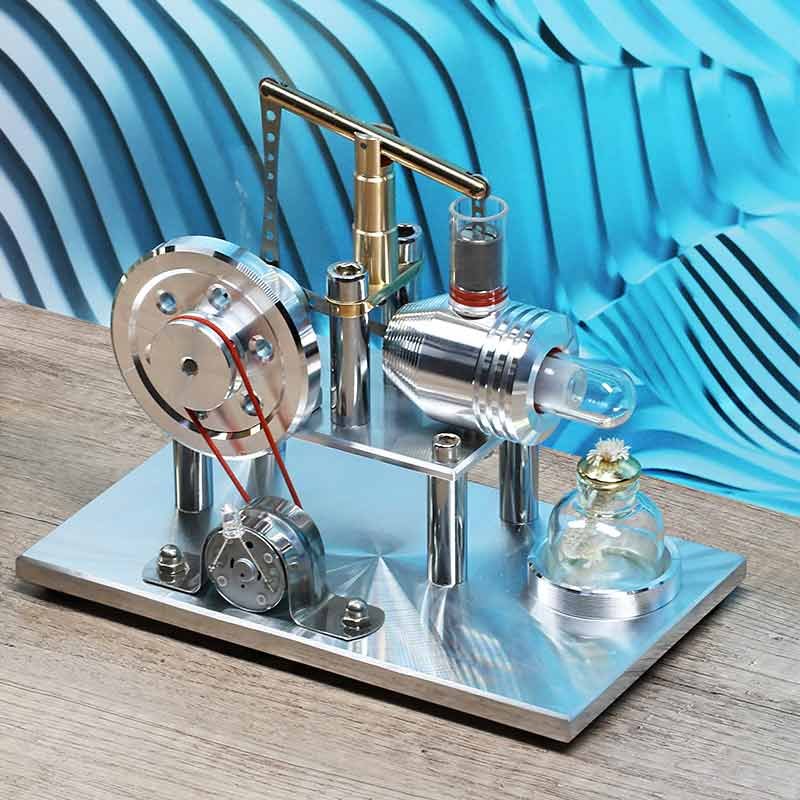 The material choice, faultless finishing, and distinctive design make this Stirling engine a valuable addition to impactful industrial decorating styles. Regardless of whether you use it as the centerpiece of your interior design or reinforce an existing industrial touch, this Stirling engine remains an applicable choice for science aficionados!