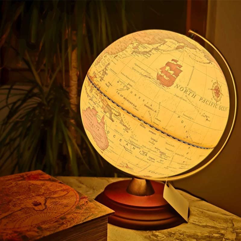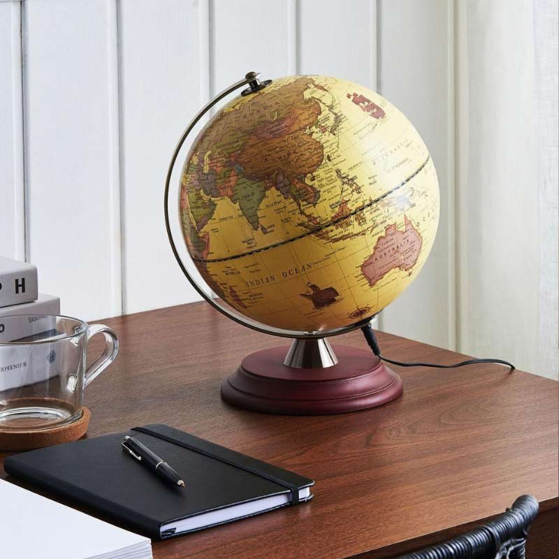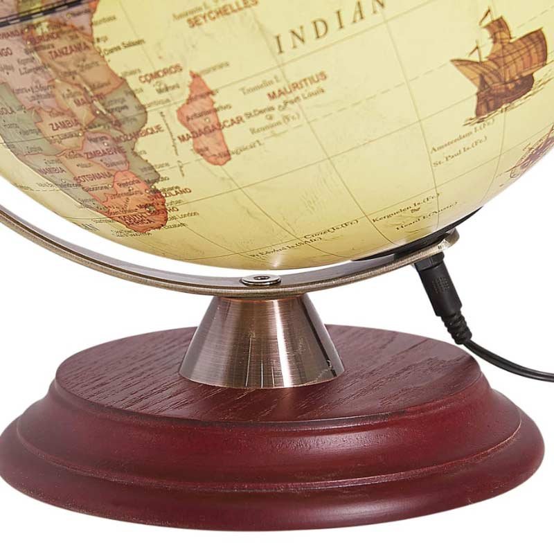 Our World Globe Light opens the door to greater understanding of continents and seas, the geographical placement of nations, and their borders. Explore the world right from your living room. A valuable tool for all age groups. Constructed using PVC and wood, it comes with a USB cord for powering.